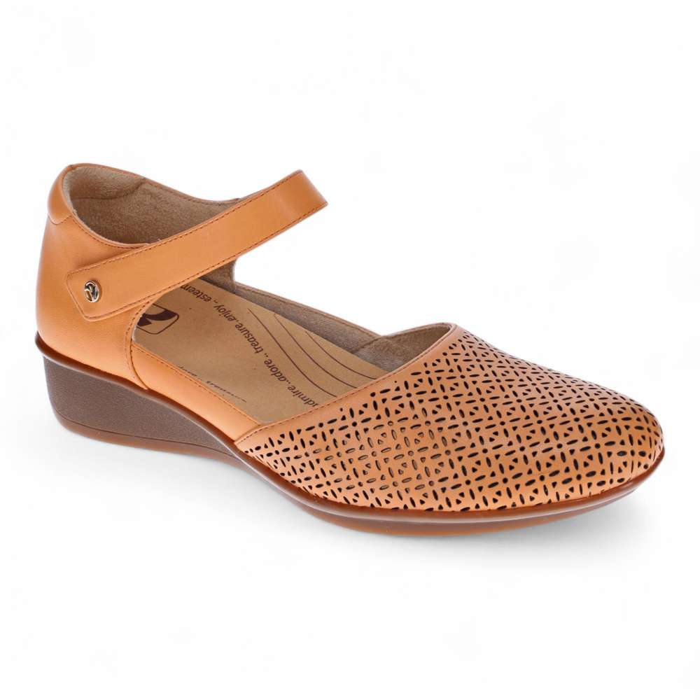 Delicate perforations adorn these stylish mary jane shoes, ensuring a soft, flexible fit. A tapered wedge adds just enough height, bridging the gap between work and weekend-wear. Like its namesake city, Osaka brings together modern styling while paying homage to a traditional silhouette. These orthopedic shoes for women feature a removable insoles which allows for the insertion of custom orthotics.
